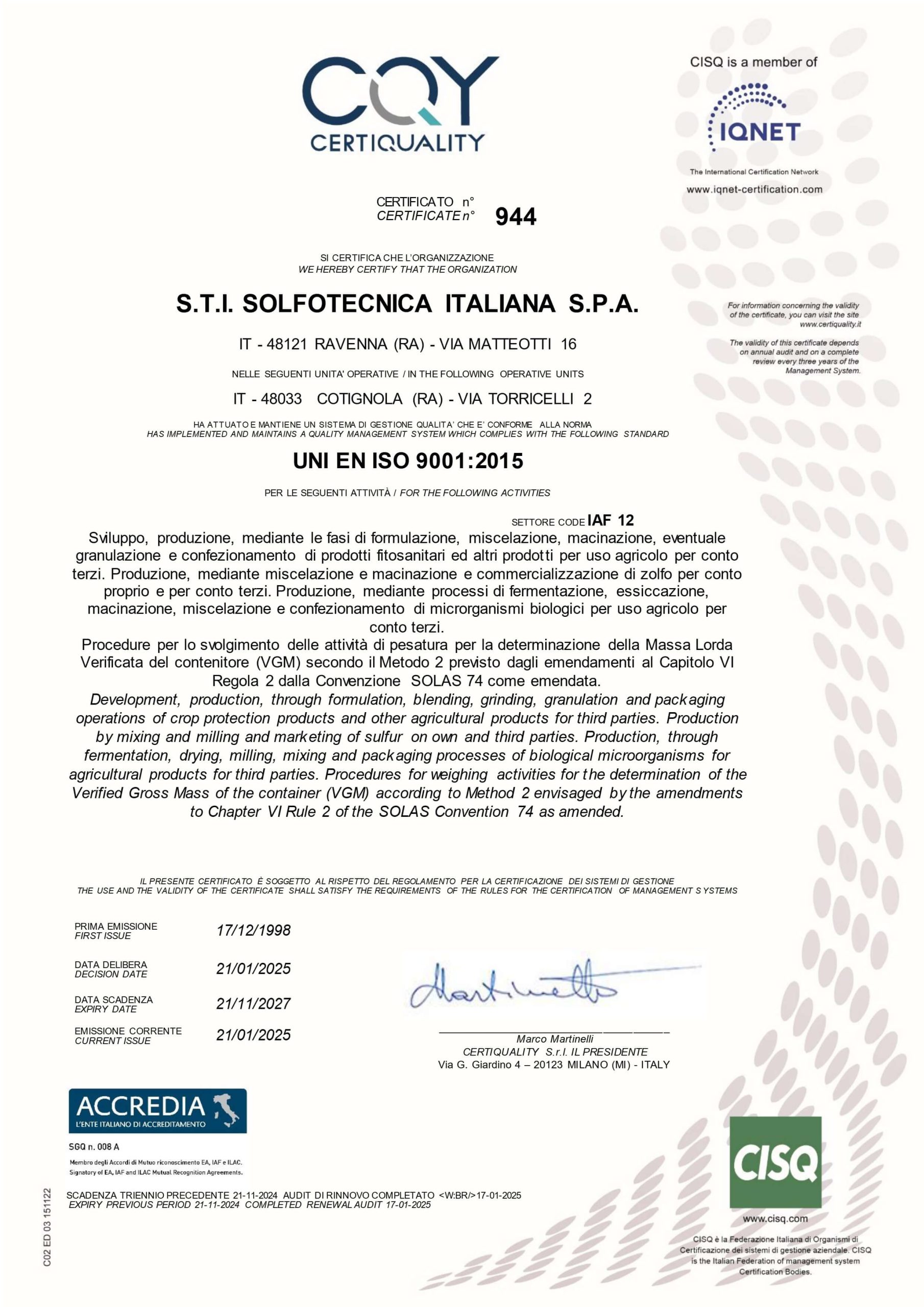 Sede: 0544-38092 | Stabilimento: 0545-992455